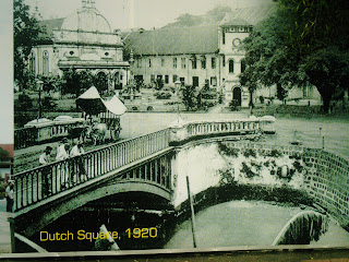 Gambar menunjukkan keadaan di dutch square melaka pada zaman penjajahan british perhatikan kereta lembu antara pengangkutan utama ketika itu.